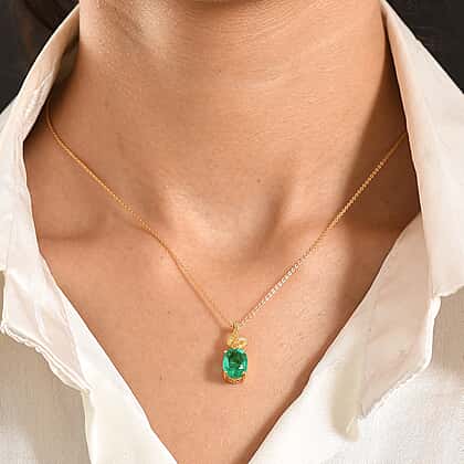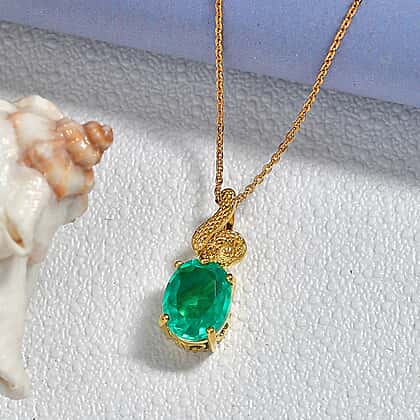 D'Joy Emeraldine Triplet Quartz Oval Cut Pendant with Chain (Size 20) in Yellow Gold Plated Sterling Silver 2.76 Ct.