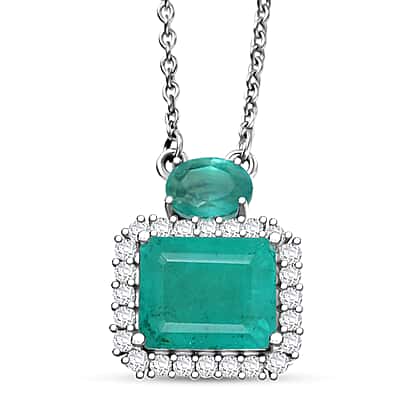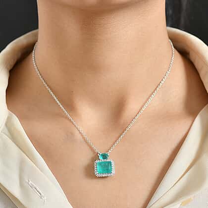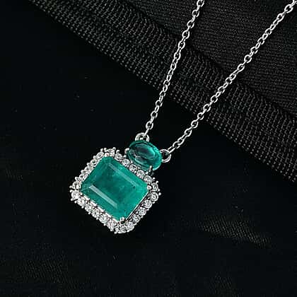 D'Joy Emeraldine Triplet Quartz, White Zircon Main Stones With Stone Neckalce (Size - 20) in Platinum OverlaySterling Silver 6.939 Ct.