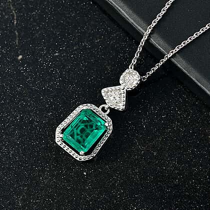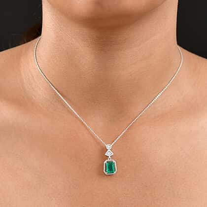 D'joy Emeraldine Triplet Quartz & White Zircon Pendant with Chain (Size 20) in Platinum Overlay Sterling Silver 1.68 Ct.