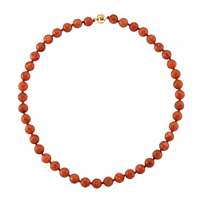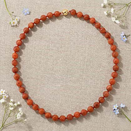 D'Joy Enhanced Red Jade Beads Necklace (Size - 20) with Magnetic Lock in Yellow Gold Plated Sterling Silver 330.00 Ct.