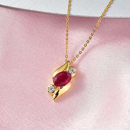 D'Joy Fissure Filled Ruby & White Zircon Pendant with Chain (Size 20) in Yellow Gold Plated Sterling Silver 1.34 Ct.