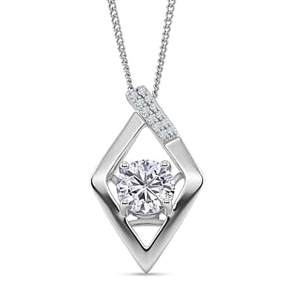 D'Joy GRA Certified Moissanite D-VVS1 Solitaire Pendant with Chain (Size 18) in Rhodium Overlay Sterling Silver 1.00 Ct