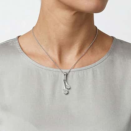 D'Joy GRA Certified Moissanite D-VVS1 Split Drop Pendant with Chain (Size 18) in Rhodium Overlay Sterling Silver