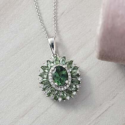 D'Joy Green Apatite & Moissanite Pendant with Chain (Size 20) in Rhodium Overlay Sterling Silver 2.90 Ct, Silver Wt. 5.36 Gms.