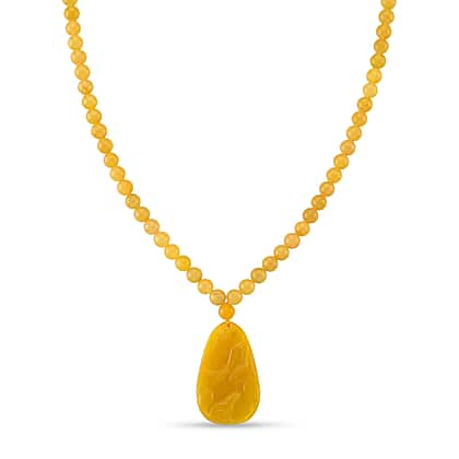 Infuse your look with this D'joy honey jade beaded necklace, featuring captivating honey-hued jade in a beaded design, carefully strung to create a mesmerizing piece. The iconic teardrop pendant at the centre of the necklace symbolises peace and prosperity, catching light with every movement. Crafted with hypoallergenic 925 sterling silver, this necklace offers durability and safety for sensitive skin. The yellow gold plating on sterling silver provides a lavish, warm tone finish. Features a classic, adjustable, sleek chain with a secure closure for a comfortable fit. Add this eye-catching combination of vibrant honey-colored jewelry to your collection.