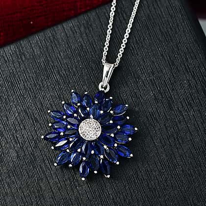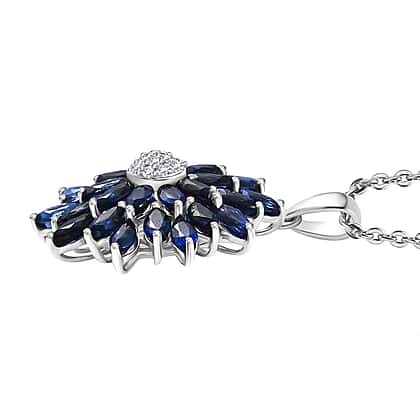 D'joy Kashmir Kyanite & White Zircon Pendant with Chain (Size 20) in Rhodium Overlay Sterling Silver 7.67 Ct.