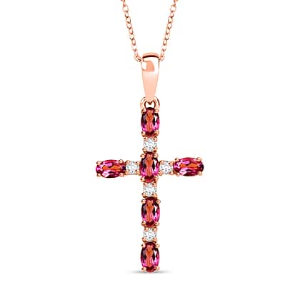 D'Joy Lab Grown Bixbite & Moissanite Cross Pendant with Chain (Size 20) in 14K Rose Gold Plated Sterling Silver 1.66 Ct.