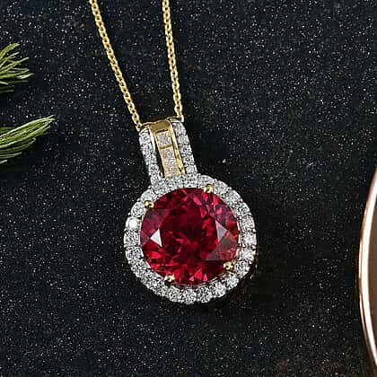 D'Joy Lab Grown Padparadscha Sapphire, Moissanite Pendant with Chain (Size 20) in 18K Vermeil Yellow Gold Over Sterling Silver 10.11 Ct.