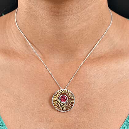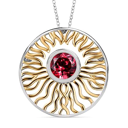 D'Joy Lab Grown Padparadscha Sapphire Pendant with Chain (Size 20) in Yellow Gold & Platinum Overlay Sterling Silver 2.80 Ct, Silver Wt. 5.96 Gms.