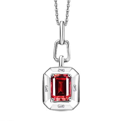 D'Joy Lab Grown Padparadscha Sapphire & White Zircon Pendant with Curb Chain (Size 20) in Rhodium Overlay Sterling Silver 2.20 Ct.