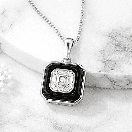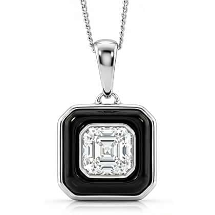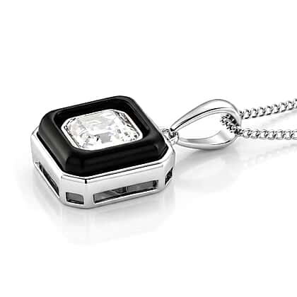 D'Joy Moissanite and Dyed Black Jade Pendant with Chain (Size - 18) in Rhodium Overlay Sterling Silver 3.35 Ct.
