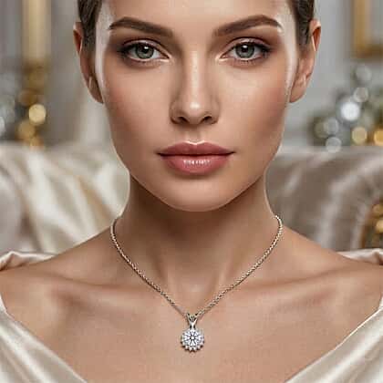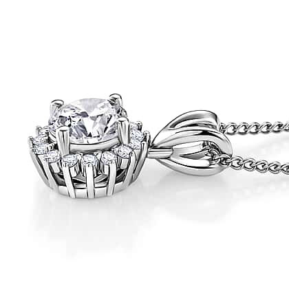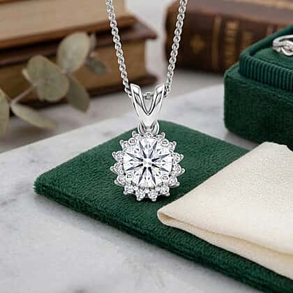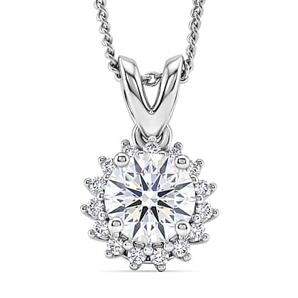 D'Joy Moissanite GRA Certified Double Halo Hearts & Arrows Cut Pendant with Chain (Size 18) in Rhodium Overlay Sterling Silver 1.20 Ct.