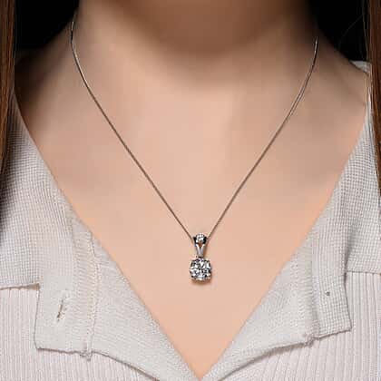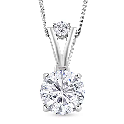 D'Joy Moissanite Pendant with Chain (Size 18) with Lobster Clasp in Rhodium Overlay Sterling Silver 2.60 Ct.
