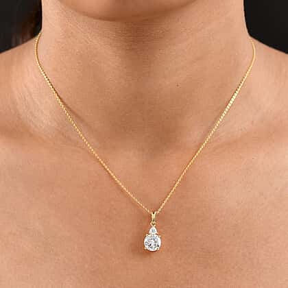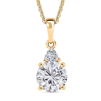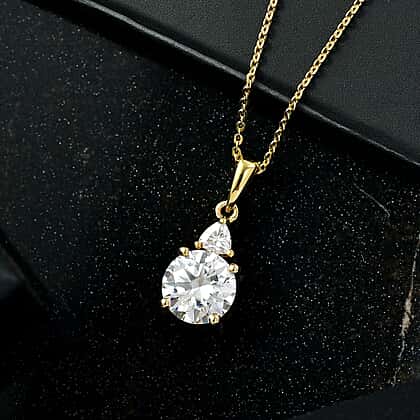 D'Joy Moissanite Pendant with Chain (Size 20) in 18K Yellow Gold Plated Sterling Silver 2.01 Ct.