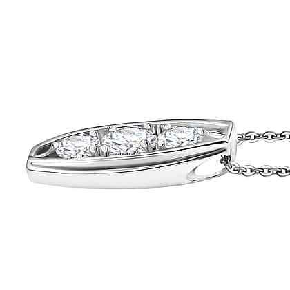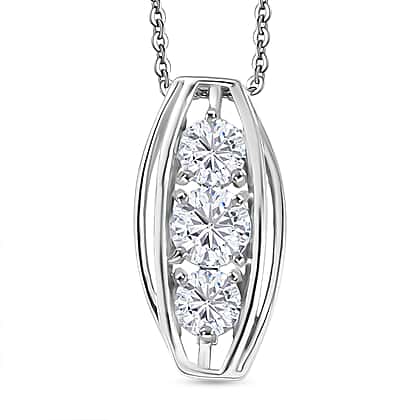D'Joy Moissanite Vertical Three Stone Pendant with Chain (Size 20) in Platinum Overlay Sterling Silver 1.47 Ct.