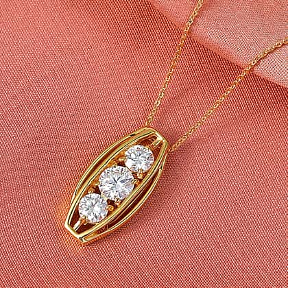 D'Joy Moissanite Vertical Three Stone Pendant with Chain (Size 20) in Yellow Gold Plated Sterling Silver 1.47 Ct.