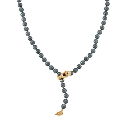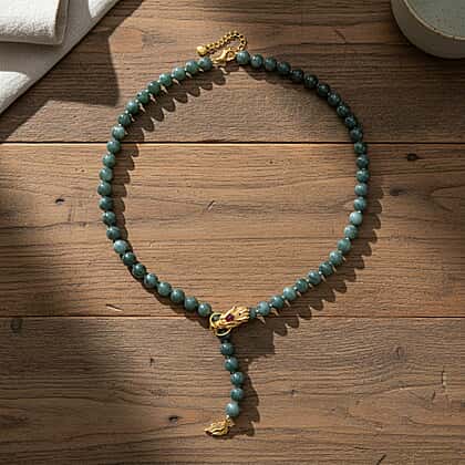 D'Joy Natural Jadeite Jade, Red Garnet, Natural Chrome Diopside & White Cubic Zirconia Beads Necklace (Size - 20-2 EXT) with Lobster Clasp in Yellow Gold Plated Sterling Silver 280.60 Ct.