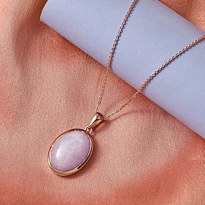 D'Joy Natural Kunzite Oval Cut Solitaire Pendant with Chain (Size 20) in Rose Gold Plated Sterling Silver 15.38 Ct