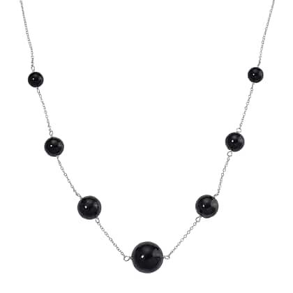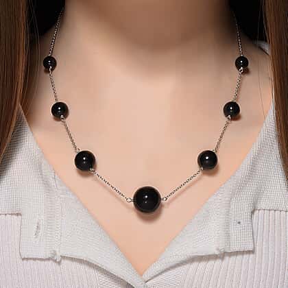 D'joy Natural Shungite Station Necklace (Size 20) with Lobster Clasp in Rhodium Overlay Sterling Silver 70.00 Ct.