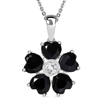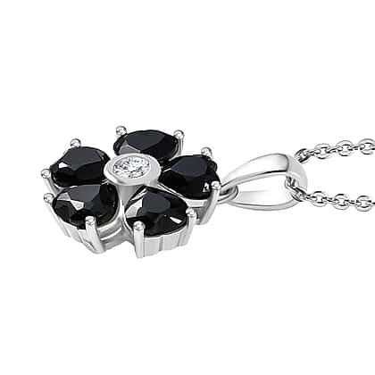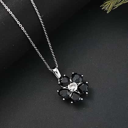 D'Joy Natural Thai Black Spinel & White Zircon Pendant with Chain (Size 20) in Platinum Overlay Sterling Silver 3.22 Ct, Silver Wt. 5.04 Gms.