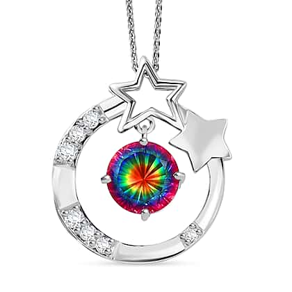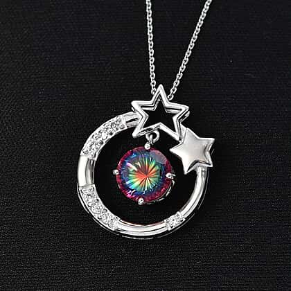 D'Joy Nebula Quartz Doublet & White Zircon Pendant with Chain (Size 20) in Platinum Overlay Sterling Silver 4.00 Ct.