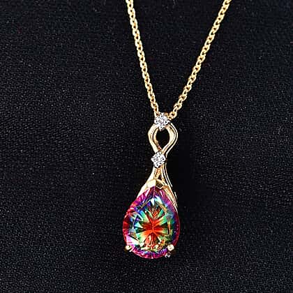 D'Joy Nebula Quartz Doublet & White Zircon Pendant with Chain (Size 20) in Yellow Gold Plated Sterling Silver 2.22 Ct.