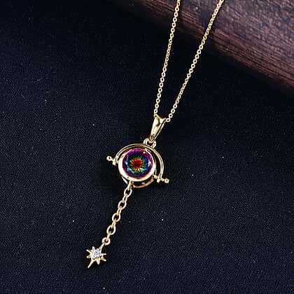 D'Joy Nebula Quartz Doublet & White Zircon Pendant with Chain (Size 20) in Yellow Gold Plated Sterling Silver 2.46 Ct.