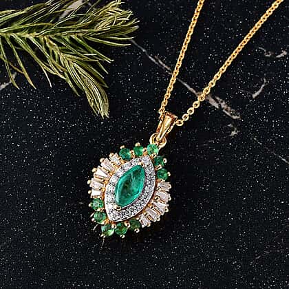 D'Joy Premium Emerald & Moissanite Pendant with Chain (Size 20) in 18K Vermeil Yellow Gold Plated Sterling Silver 1.41 Ct.