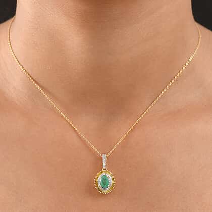 D'Joy Premium Emerald, Yellow Diamond and White Diamond Double Halo Pendant with Chain (Size 20) in 18K Vermeil Yellow Gold Plated Sterling Silver 1.23 Ct.