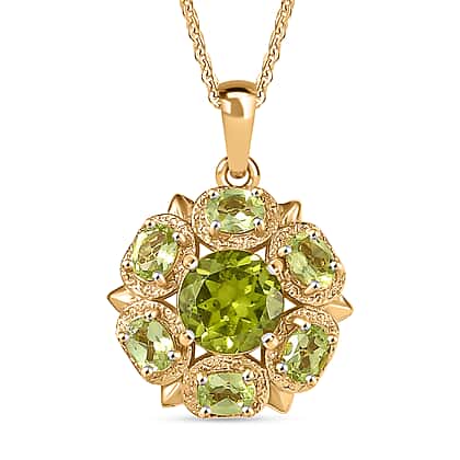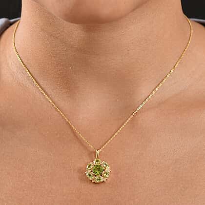 D'joy Radiant Natural Hebei Peridot Bloom Pendant with Chain (Size 20) in Yellow Gold Plating Sterling Silver 2.53 Ct.