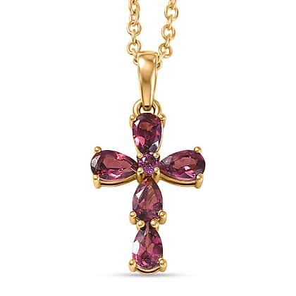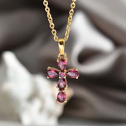 D'Joy Rhodolite Cross Pendant with Chain (Size 20) in Yellow Gold Tone 1.50 Ct.