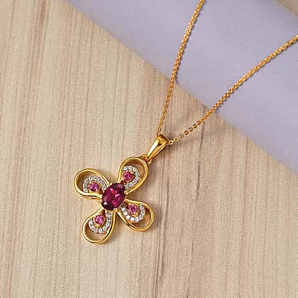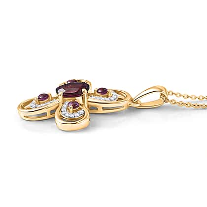 D'Joy Rhodolite Garnet & White Zircon Pendant with Chain (Size 20) in Yellow Gold Plated Sterling Silver 1.55 Ct.