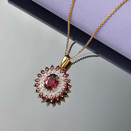 D'Joy Rhodolite Garnet & White Zircon Pendant with Chain (Size 20) in 18K Vermeil Yellow Gold Plated Sterling Silver 2.63 Ct, Silver Wt. 4.30 Gms