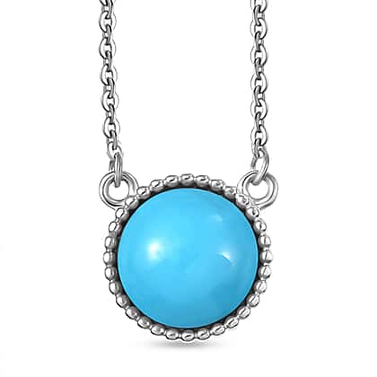 D'joy Sleeping Beauty Turquoise Solitaire Necklace (Size - 20) with Lobster Clasp in Platinum Overlay Sterling Silver 2.39 Ct.