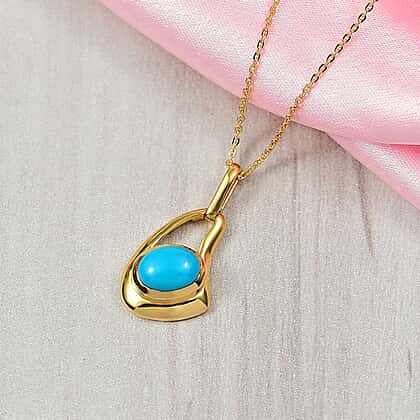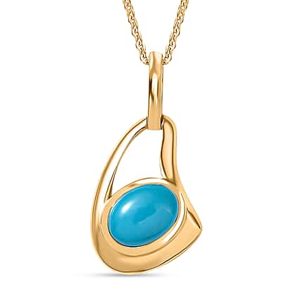 D'Joy Sleeping Beauty Turquoise Pendant with Chain (Size 20) in 18K Yellow Gold Plating Sterling Silver 1.34 Ct, Silver Wt. 5.15 Gms.