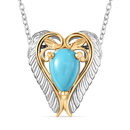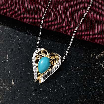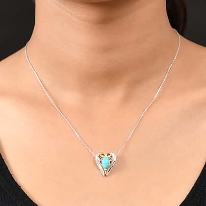 D'joy Sleeping Beauty Turquoise Heart Pendant with Chain (Size 20) in Yellow Gold Plated and Platinum Overlay Sterling Silver 1.17 Ct.