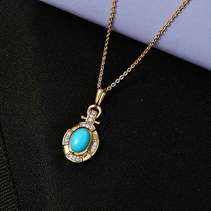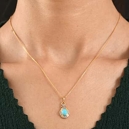 D'Joy Sleeping Beauty Turquoise & White Zircon Pendant with Chain (Size 20) in Yellow Gold Plated Sterling Silver 1.00 Ct.