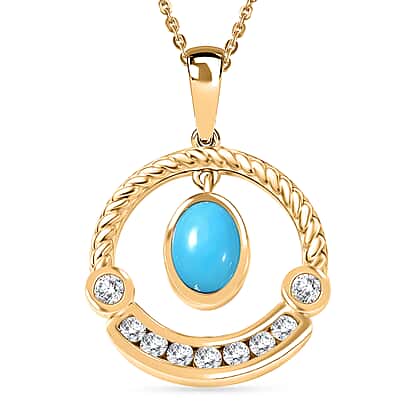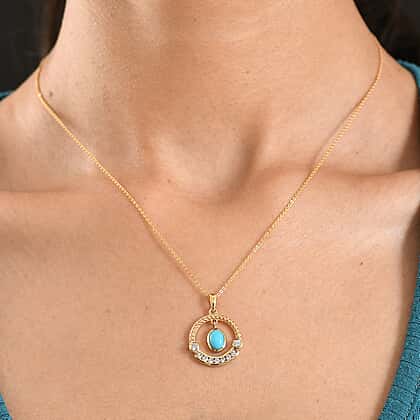 D'Joy Sleeping Beauty Turquoise & White Zircon Pendant with Chain (Size 20) in Yellow Gold Plated Sterling Silver 1.31 Ct.