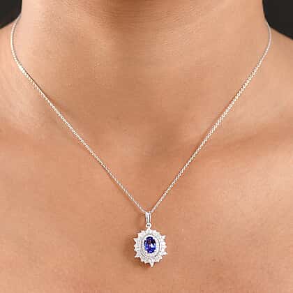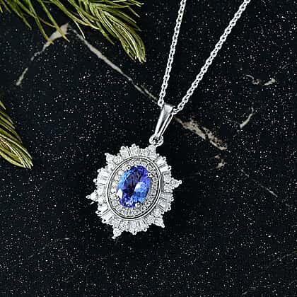 The simplest way to effortlessly appear high-fashion is by donning this D'Joy tanzanite and moissanite pendant. At the heart lies the rare and spellbinding oval-faceted tanzanite radiating a vivid blue hue. It is embellished with a halo of white zircons that helps add oodles of sparkle to the design. This pendant features a double halo design and is further adorned with baguette-cut moissanite that renders the charm a starburst design. Inspired by the beauty of evening stars in the sky, this tanzanite pendant feels like a dream come true. Crafted in rhodium overlay sterling silver, this pendant comes attached with a dainty chain. Tanzanite is known for its vibrant blue hue and transformative powers; hence, this pendant makes a great choice for those looking to make a fresh start in their lives.