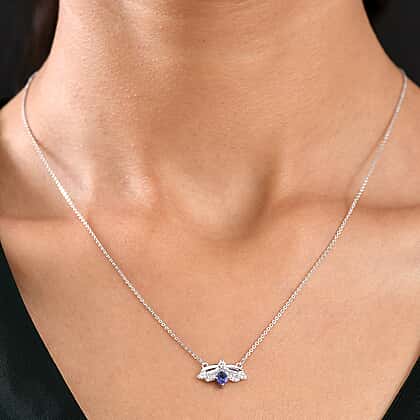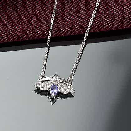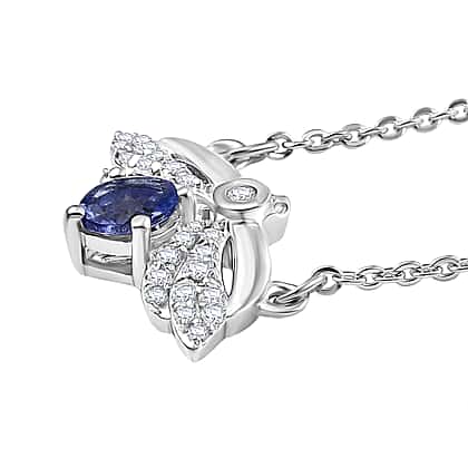 D'joy Tanzanite, White Zircon HoneyBee Pendant Necklace (Size - 20) with Lobster Clasp in Platinum Overlay Sterling Silver