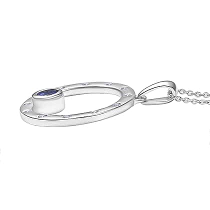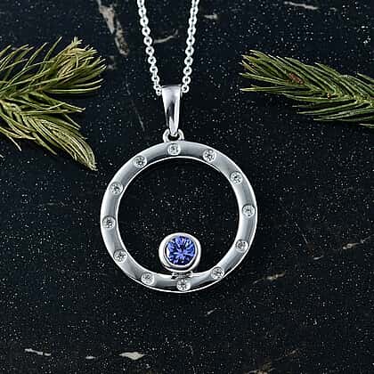 D'Joy Tanzanite & White Zircon Pendant with Chain (Size 20) in Platinum Overlay Sterling Silver
