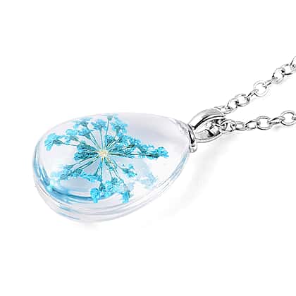 Pressed Laceflower 24 Inch Necklace in Silver Tone