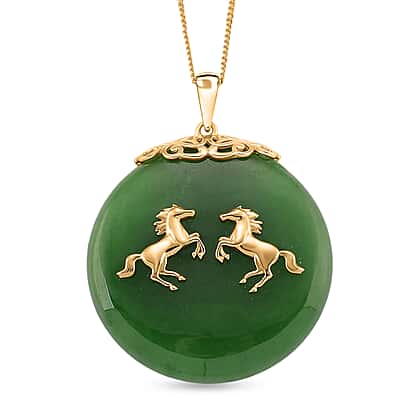 Dyed Green Jade Horse Pendant with Chain (Size 18) in Yellow Gold Plated Sterling Silver 65.00 Ct.