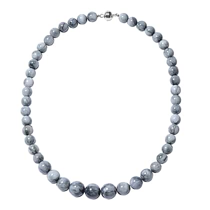 Eagle Eye Jasper Beaded Necklace with Magnetic Lock in Rhodium Plated Sterling Silver 20 Inch