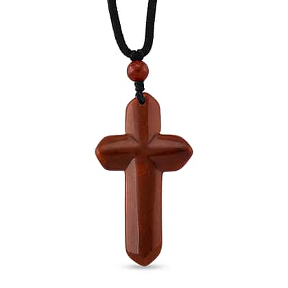 Easter Special-Red Jade Cross Carved Necklace with Adjustable Cotton Thread (Size - 28 inch) 35.00 Ct.