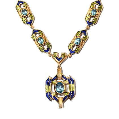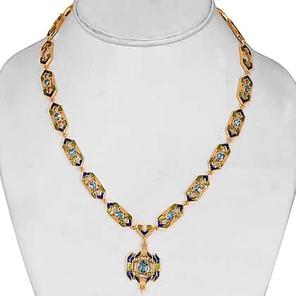 5.5 Ct. Electric Blue Topaz Enamelled Necklace in 14K Gold Plated Sterling Silver - Size 18