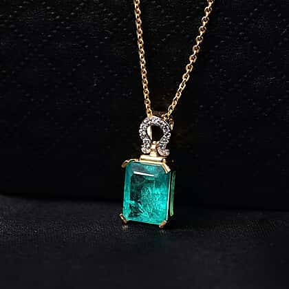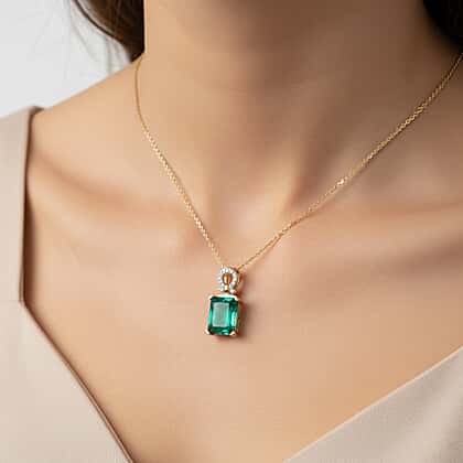 Emeraldine Triplet Quartz, White Zircon Pendant with Torn Chain 19DC (Size 20) Sterling Silver 0.26 ct 3.060 Ct.