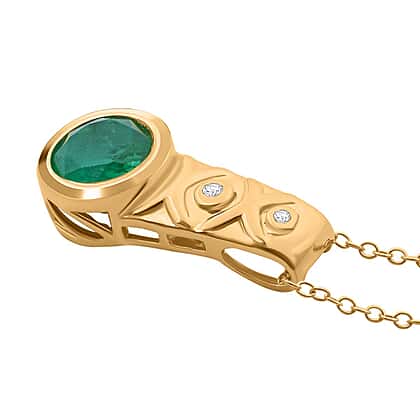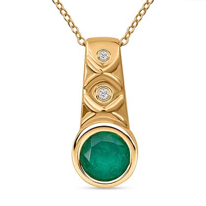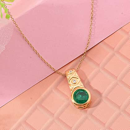 Emeraldine Triplet Quartz & White Zircon Pendant with Chain (Size - 20) in Vermeil Yellow Gold Plated Sterling Silver 3.32 Ct