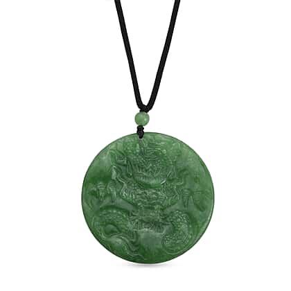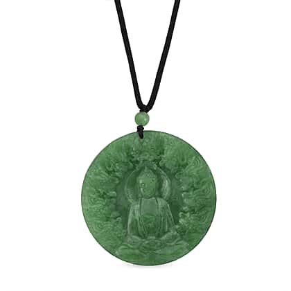 Enhanced Green Jade Beads Double-Sided Carving Necklace (Size - 28) with Adjustable Cotton Thread 220.00 Ct.