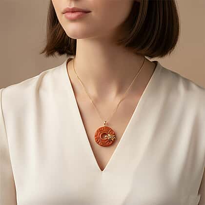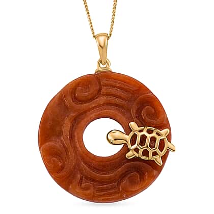 Enhanced Red Jade Cabochon Cut Pendant with Chain (Size 18) in Yellow Gold Plated Sterling Silver 37.00 Ct.